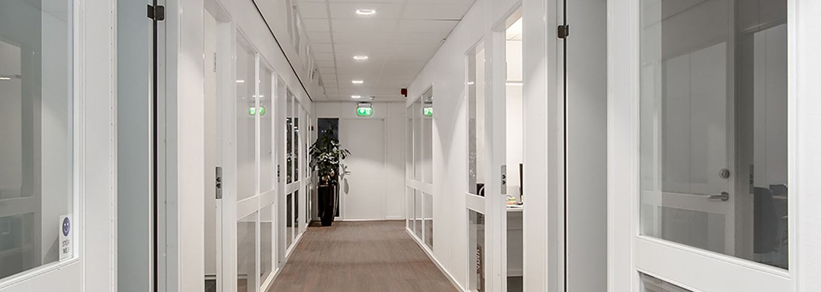 Projektet är ett av det första med vår nya kontorsarmatur Void. Armaturen sitter både i flerplats- kontor, cellkontor samt i konferensrum. Tack vare ett rikt utbud av varianter är det en armatur som passar i de flesta sammanhang. I korridorer sattes Nemo 6 downlight samt i öppna ytor InLED 6.6 med rund ljusöppning. Kombinationen av smakfull inredning och en prydlig belysningslösning gav Hallbo ett huvudkontor som kommer stå sig i många år.
