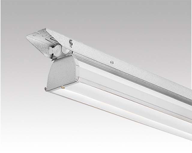 Bredstrålande (B), medelstrålande (M) samt smalstrålande (S) för lagergångar och höga takhöjder. Inkoppling sker i gavlar via dubbla införingar. Överkoppling 2,5mm² som standard.
