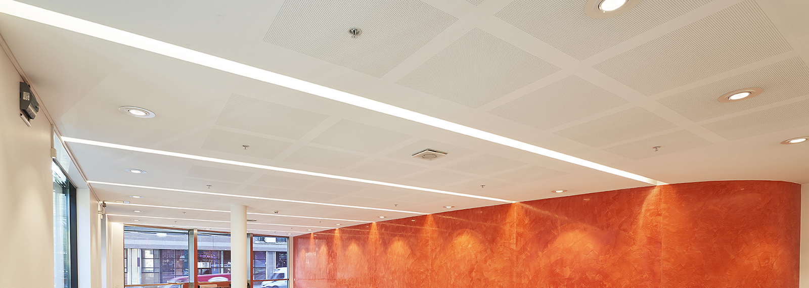 – Den nya LED-armaturen skulle passa in i de mått och upphöjningar där lysrörsarmaturerna tidigare suttit. Samtidigt skulle vi ha downlights som skulle anpassas till befintliga hål.