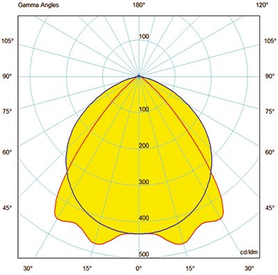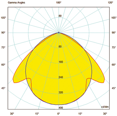 Försedd med diffuserande skiva som på ett effektivt sätt minskar bländningen.